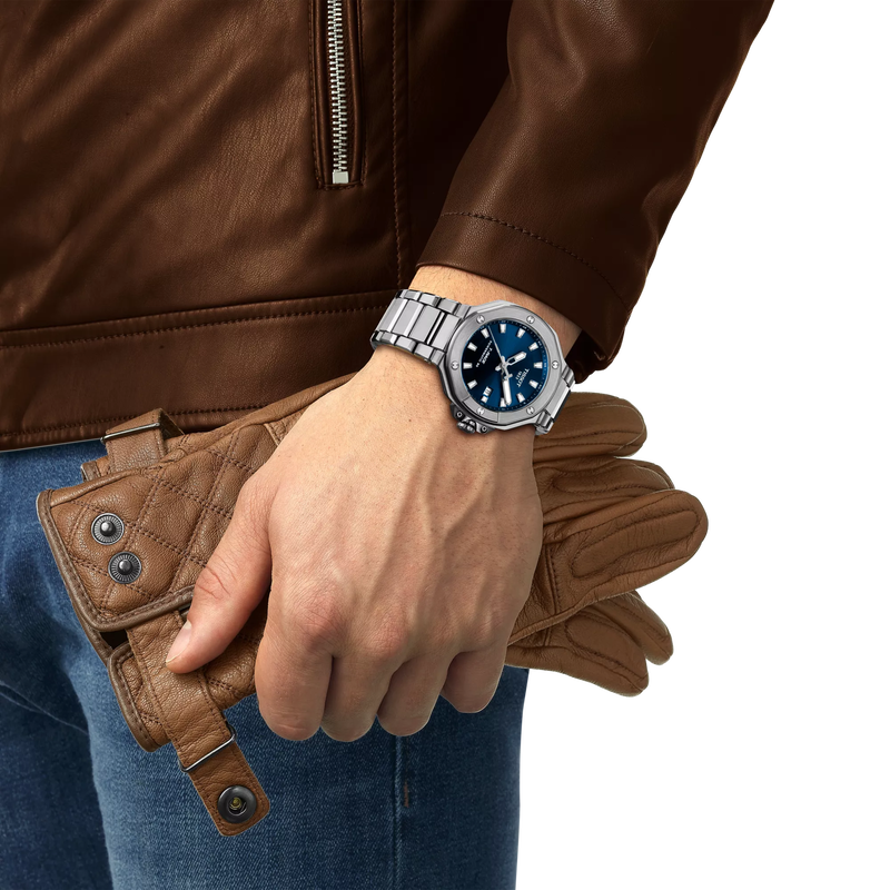 À l’intérieur bat un mouvement automatique suisse, visible à travers le fond transparent, qui permet d’admirer le cœur mécanique de la montre. Équipée du Powermatic 80, elle offre jusqu’à 80 heures de réserve de marche, une caractéristique qui garantit autonomie et fiabilité même lors des journées les plus exigeantes. L’ajout du spiral Nivachron renforce la stabilité du mouvement, assurant une précision optimale face aux champs magnétiques et aux variations environnementales.
